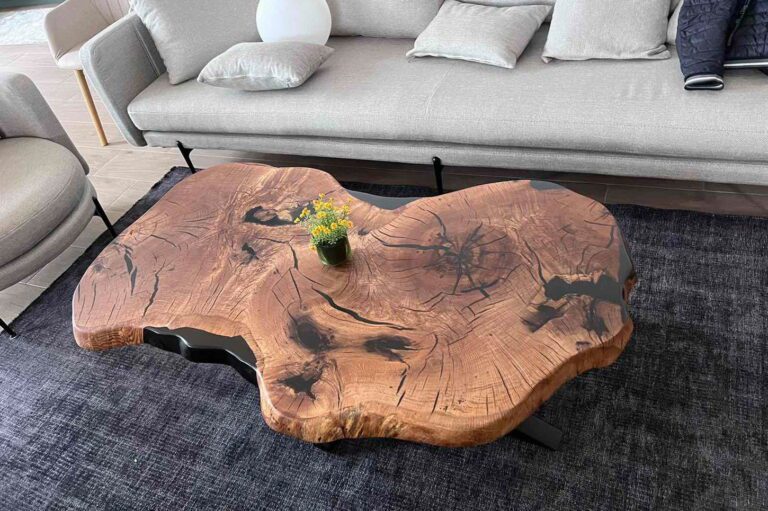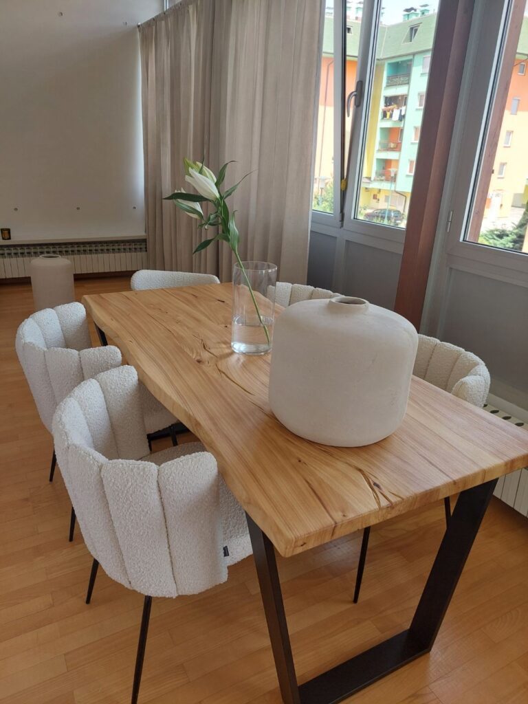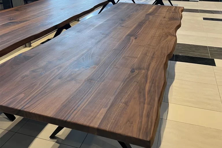 Stol od punog drveta – Live Edge rubovi i metalne noge